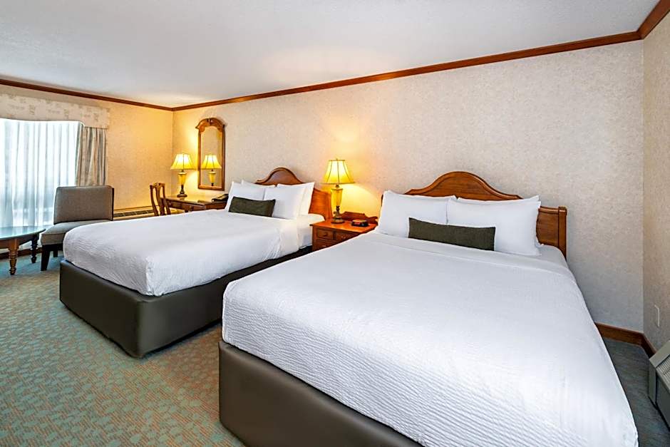Featuring vaulted cedar ceilings, this 2 level suite provides a granite gas fireplace, sitting area and a loft bedroom. 2 flat-screen TVs are available, one in the living room and one in the bedroom. Free WiFi is included.